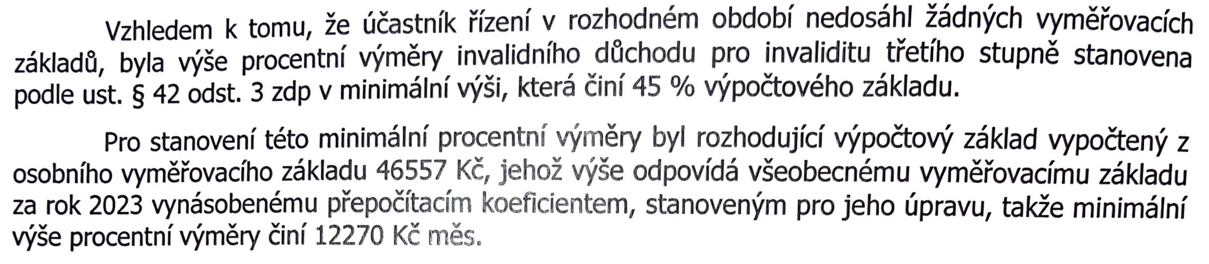 Od posudkového lékaře jsme dostali stanovisko/posudek, že má dcera má 3. stupeň invalidity. V tomto týdnu jsme obdrželi od ČSSZ z Prahy rozhodnutí o přidělení výše invalidního důchodu. V rozhodnutí je uvedeno odůvodnění vypočítaného invalidního důchodu. Celkem rozumíme tomu, že se důchod skládá ze dvou částí, a to ze základní výměry 4 660 Kč a tzv. procentní výměry. Nicméně u procentní výměry je v odůvodnění textový popis výpočtu, který je pro nás laiky bohužel nesrozumitelný a řekněme tak trochu netransparentní.